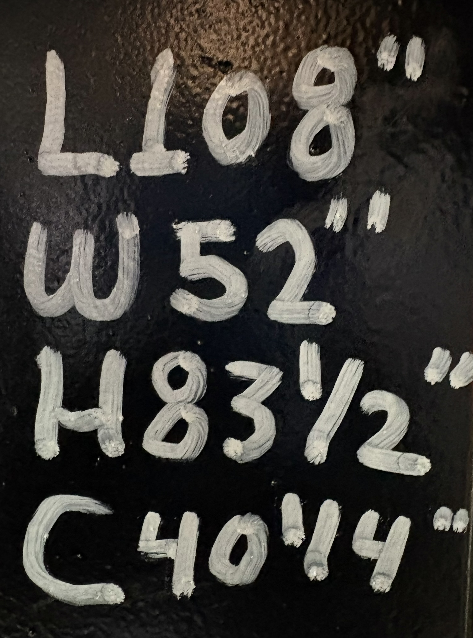 L: 108" W: 52" H: 83.5"