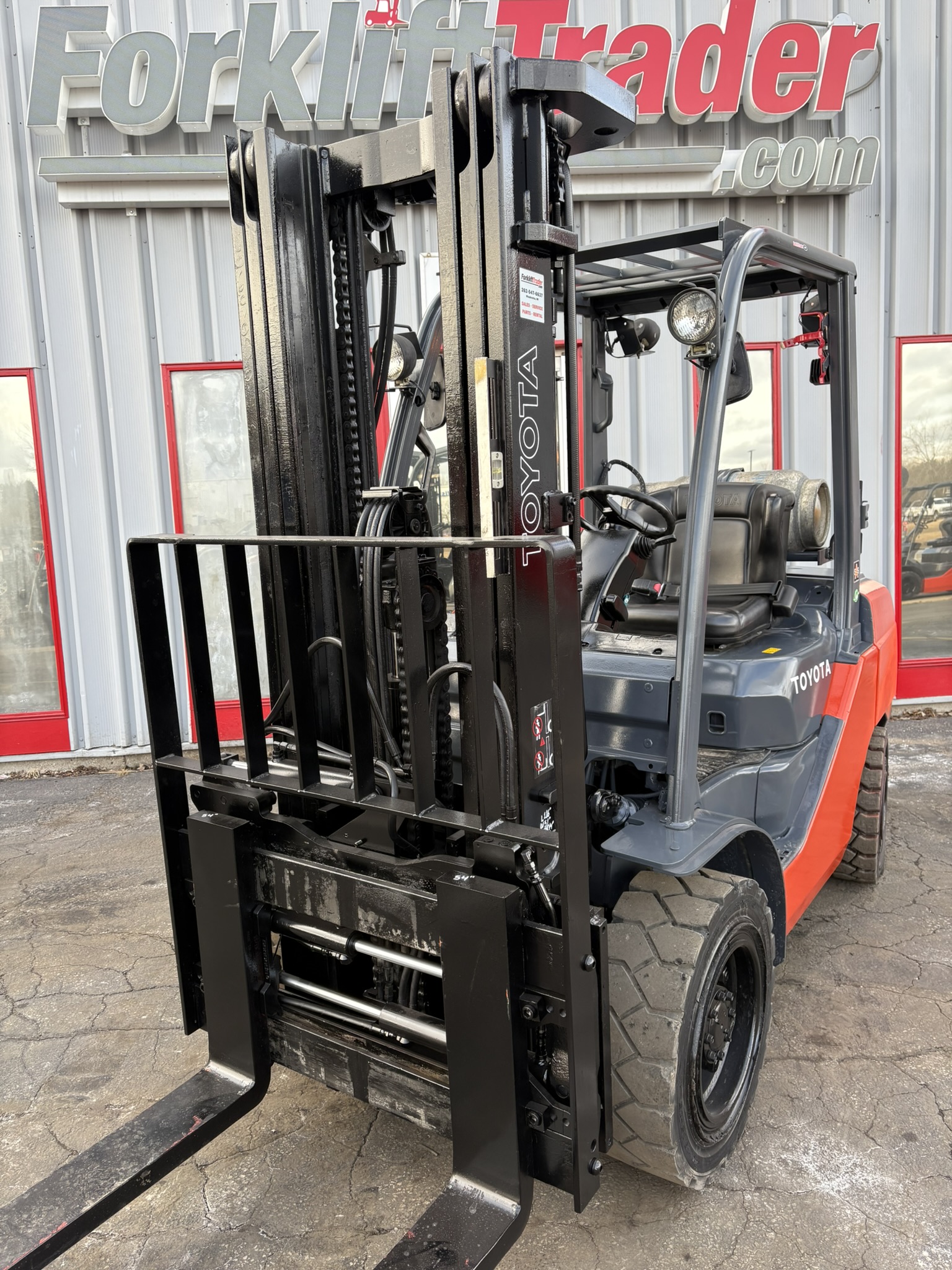 *2011 TOYOTA 8FGU30 SOLID PNEUMATIC TIRE 6000LB FORKLIFT WITH SIDE SHIFTING FORK POSITIONER