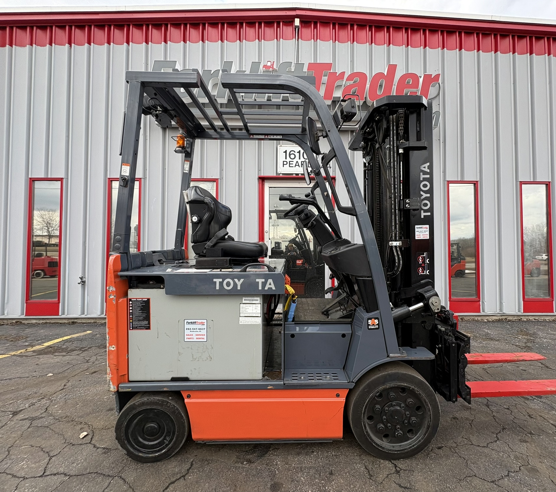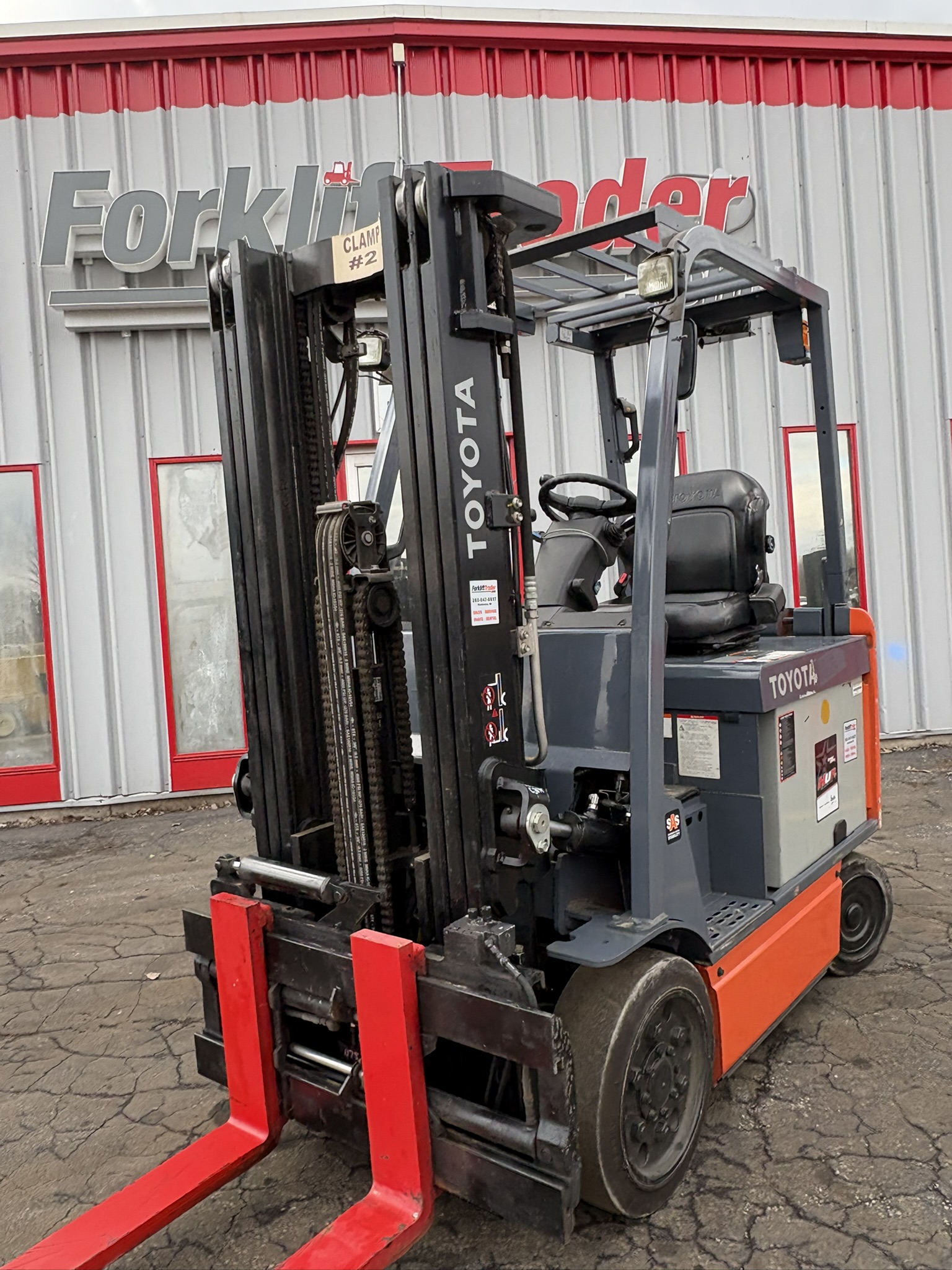 *SOLD* 2020 LOW HOUR TOYOTA 8FBCHU25 ELECTRIC 5000LB FORKLIFT WITH SIDE SHIFTING FORK POSITIONER