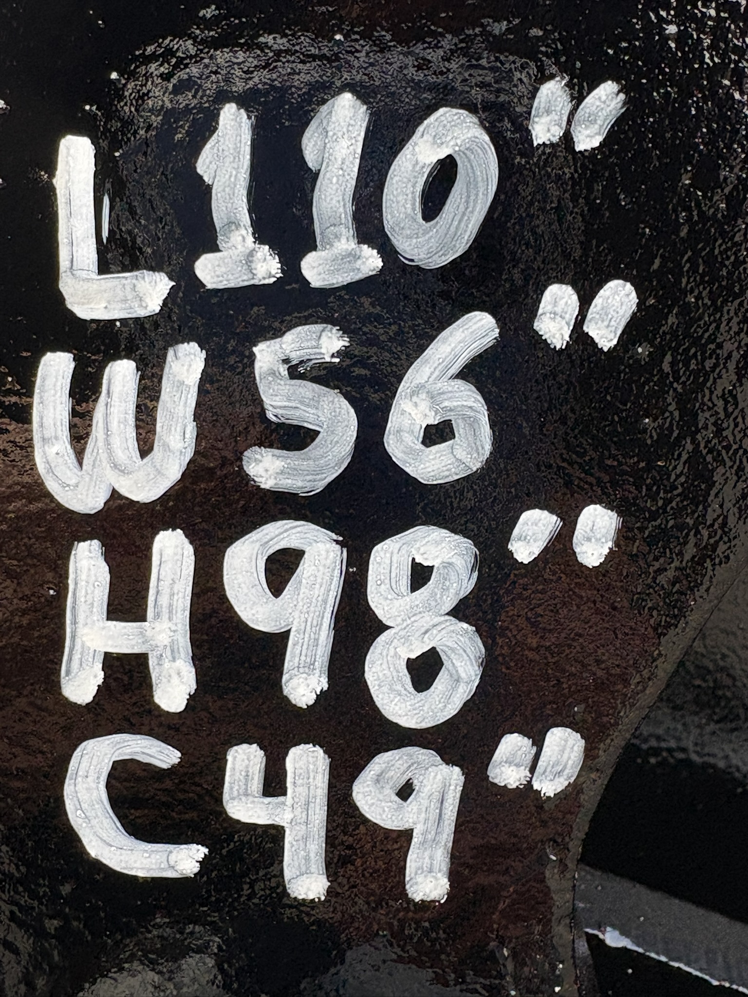 L: 110" W: 56" H: 98"