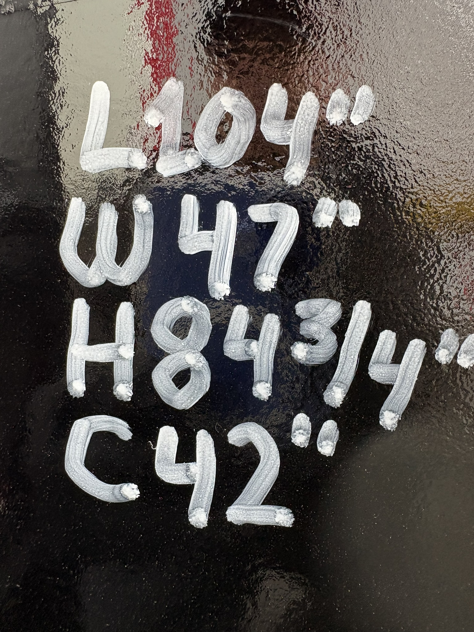 L: 104" W: 47" H: 84.75"