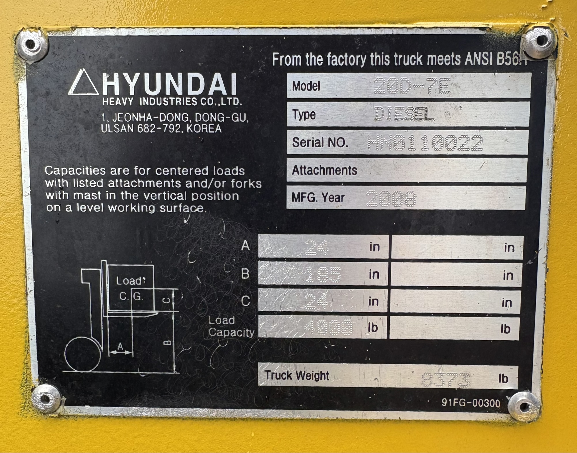 *LOW HOUR DIESEL HYUNDAI 20D-7E SOLID PNEUMATIC TIRE 4000LB FORKLIFT