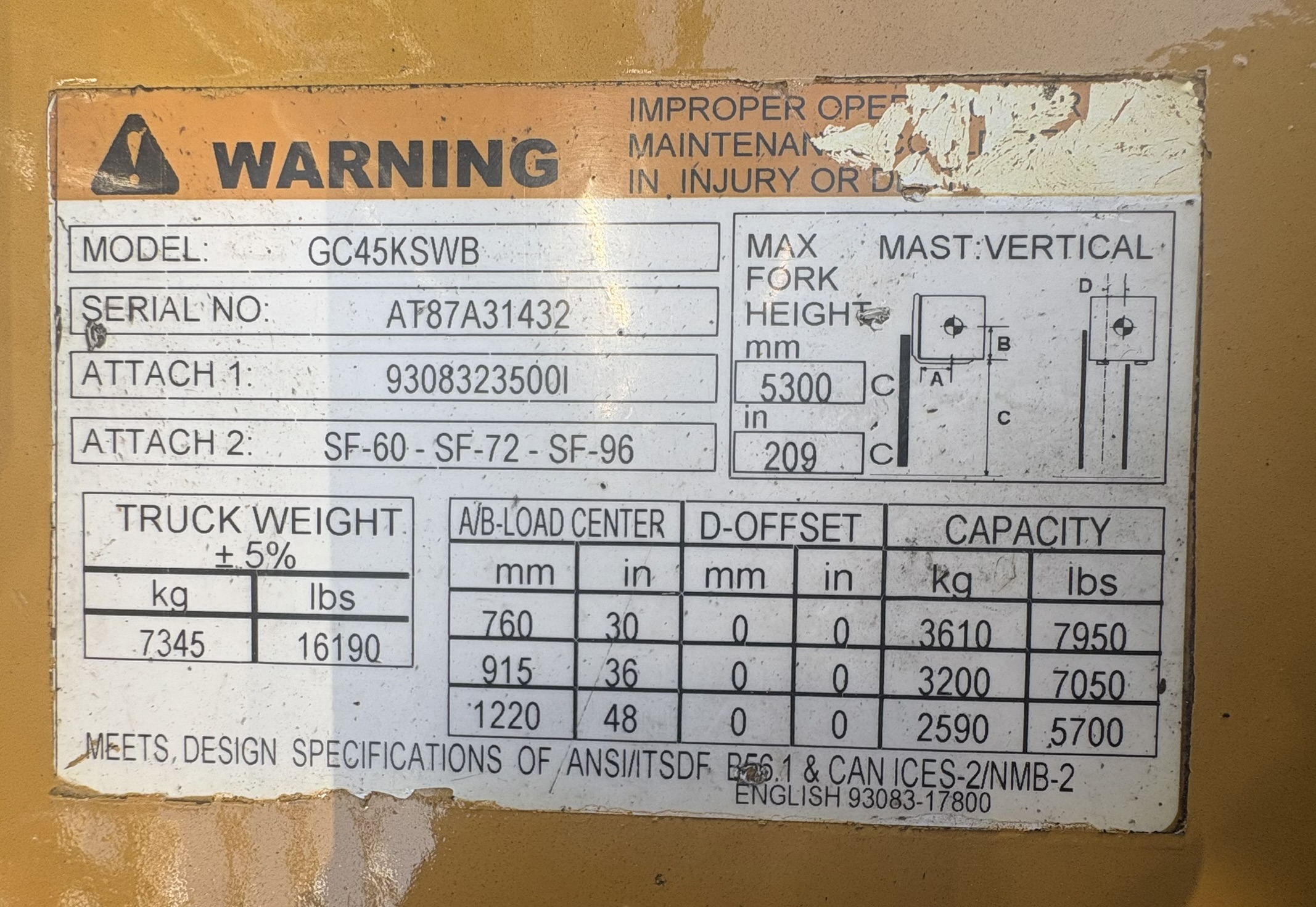 LIFT HEIGHT: 209"