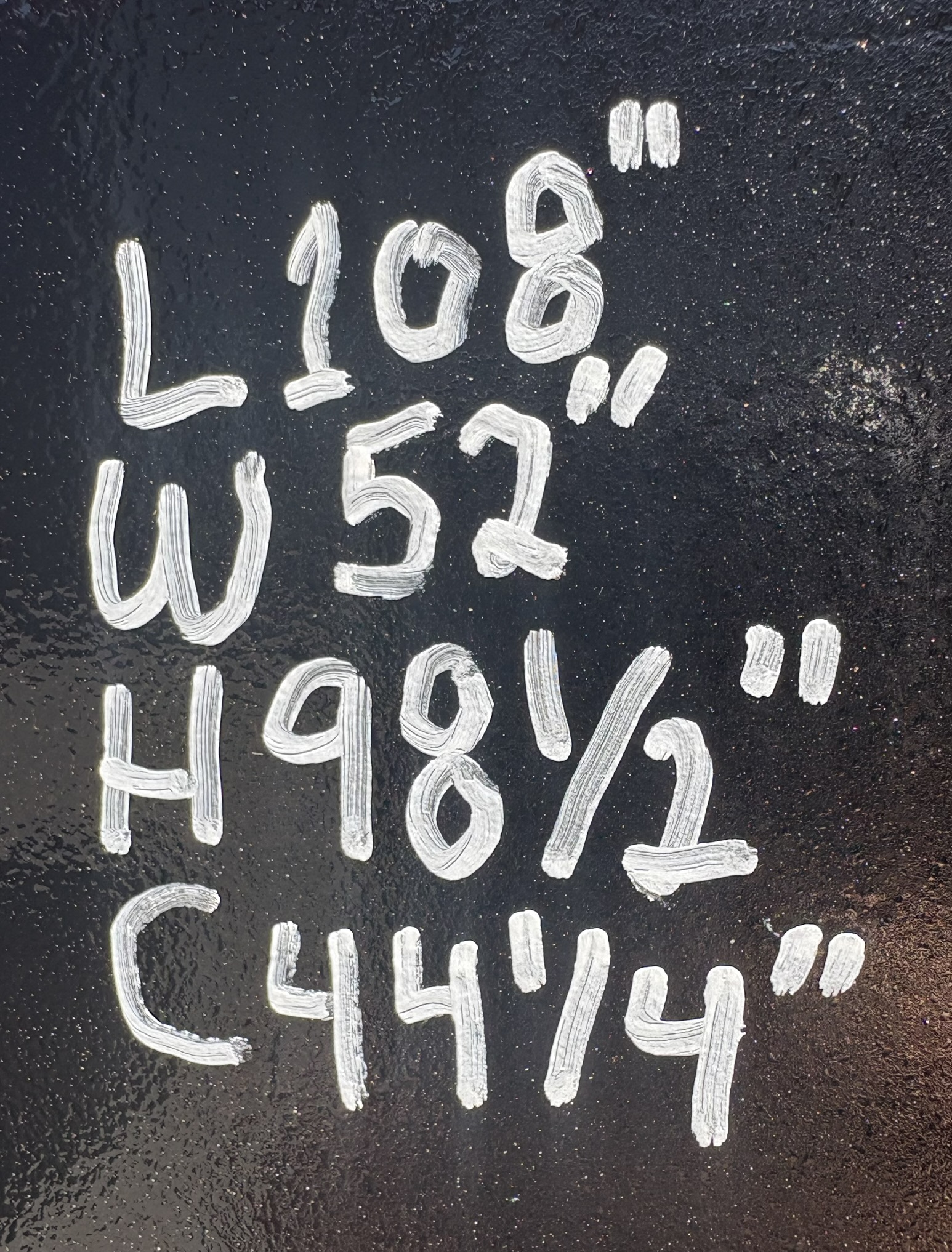 L: 108" W: 52" H: 98.5"