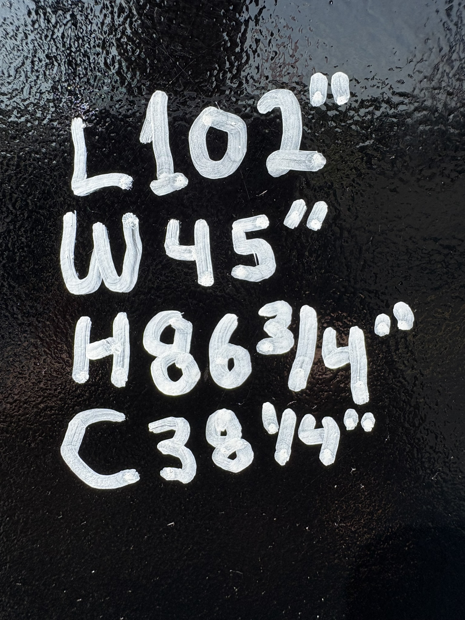 L: 102" W: 45" H: 86.75"