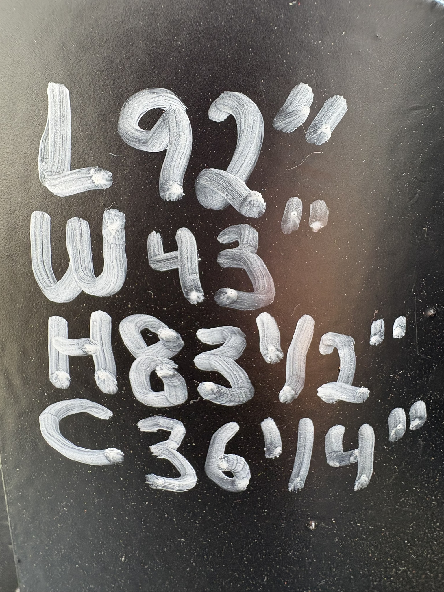 L: 92" W: 43" H: 83.5"