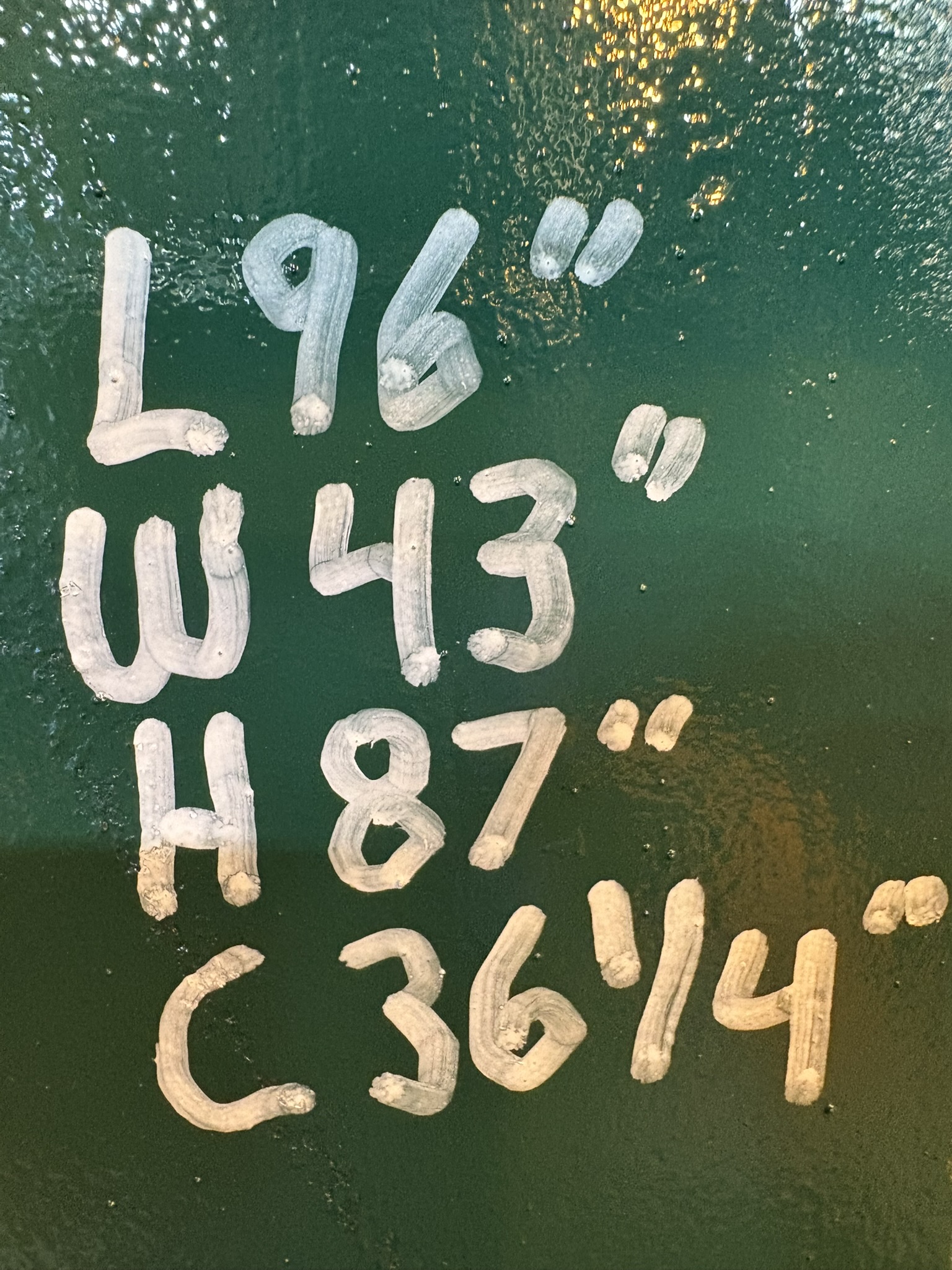 L: 96" W: 43" H: 87"