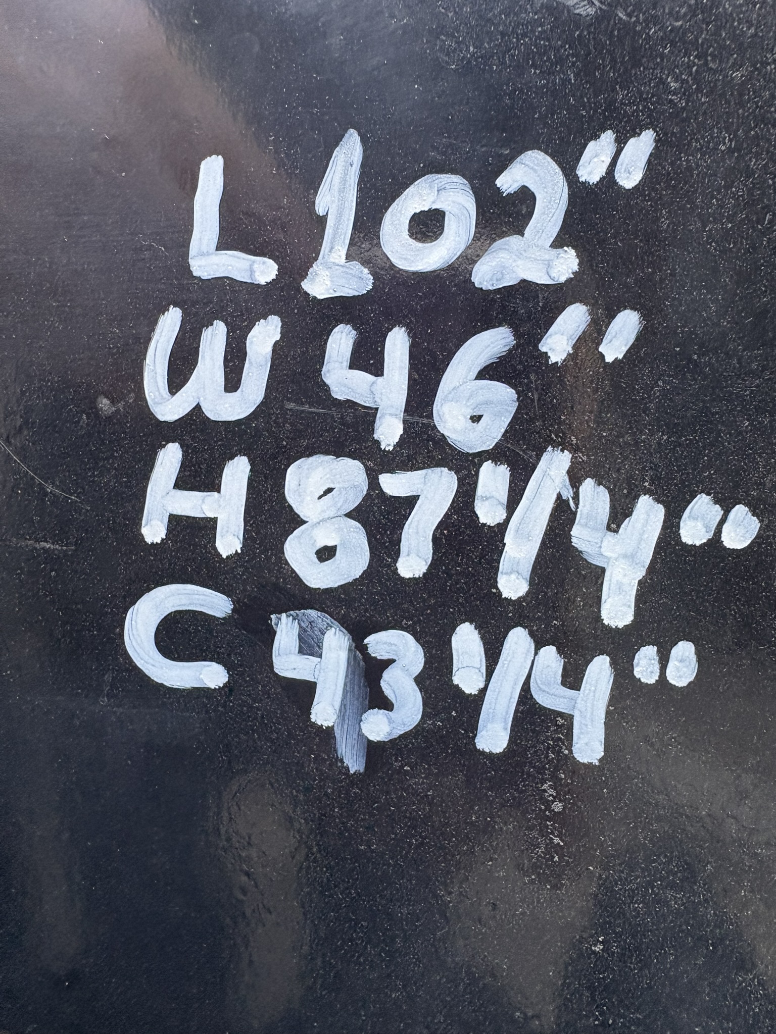 L: 102" W: 46" H: 87.25"