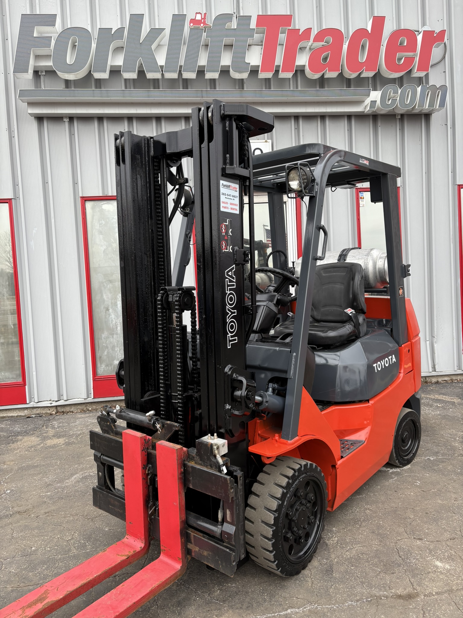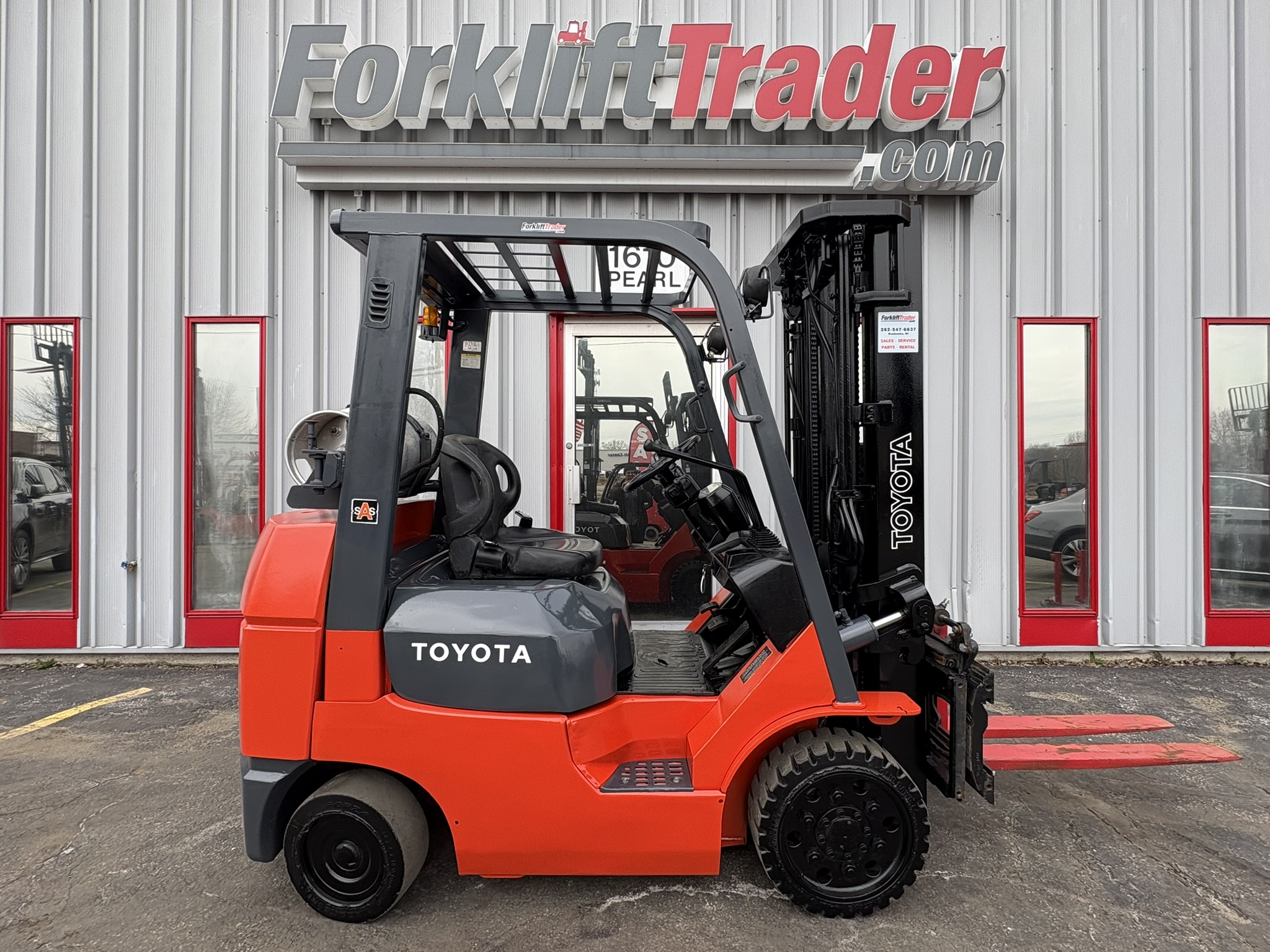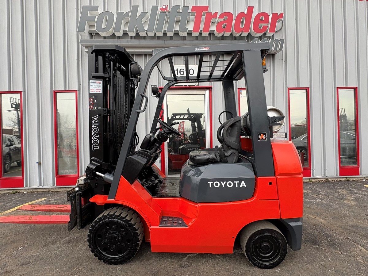 TOYOTA 7FGCU25 CUSHION TIRE 5000LB FORKLIFT WITH SIDE SHIFTING FORK POSITIONER