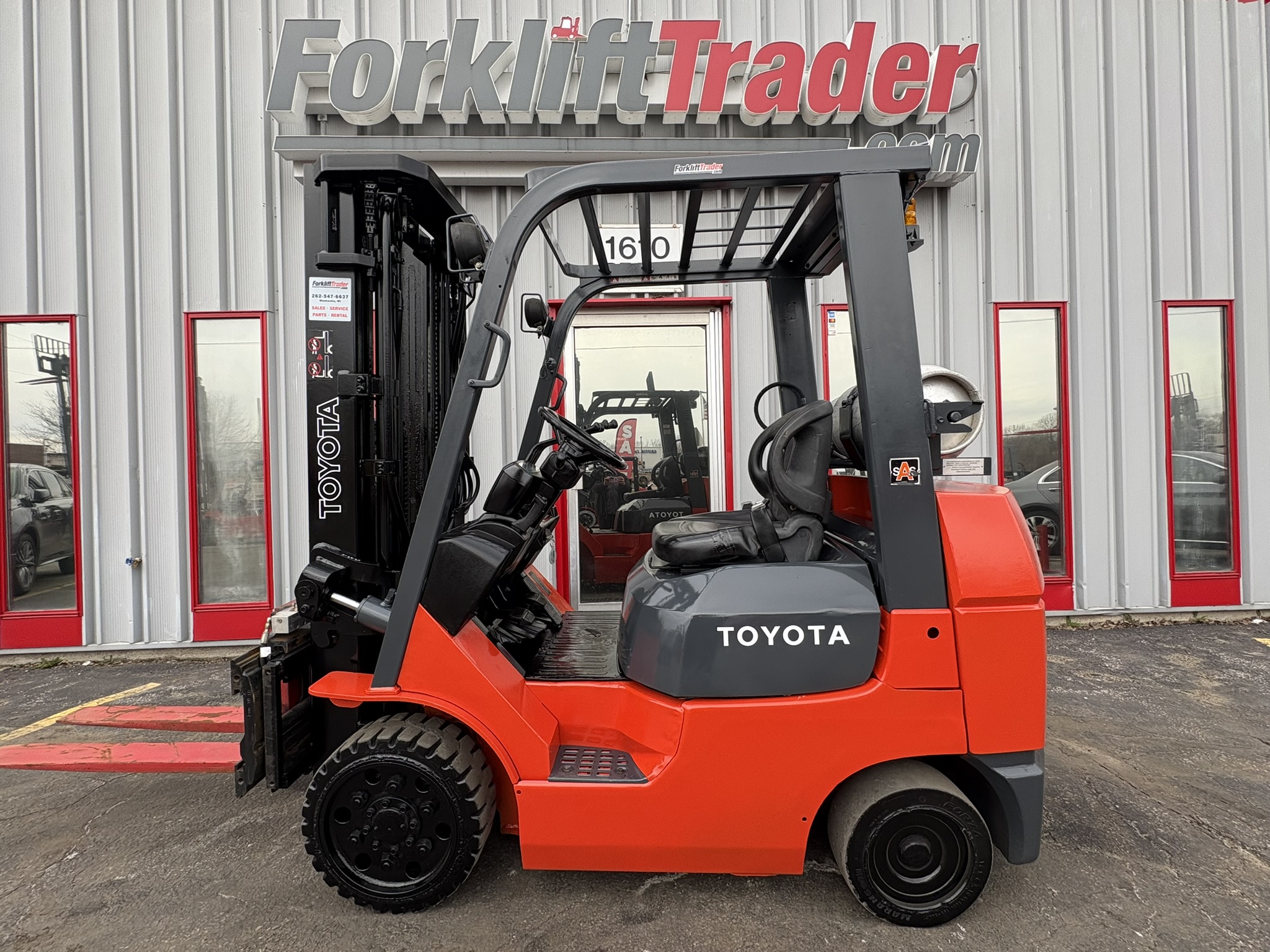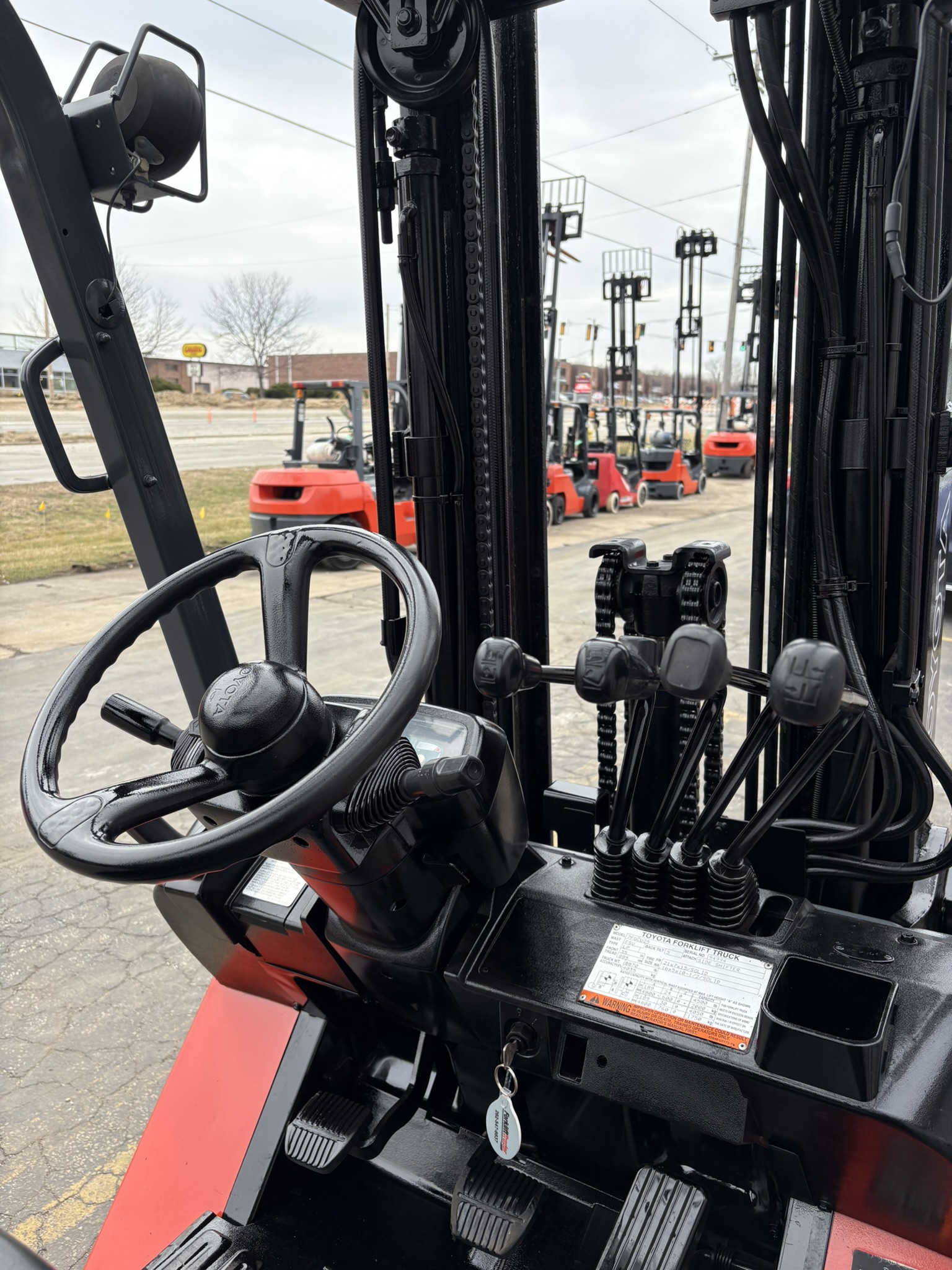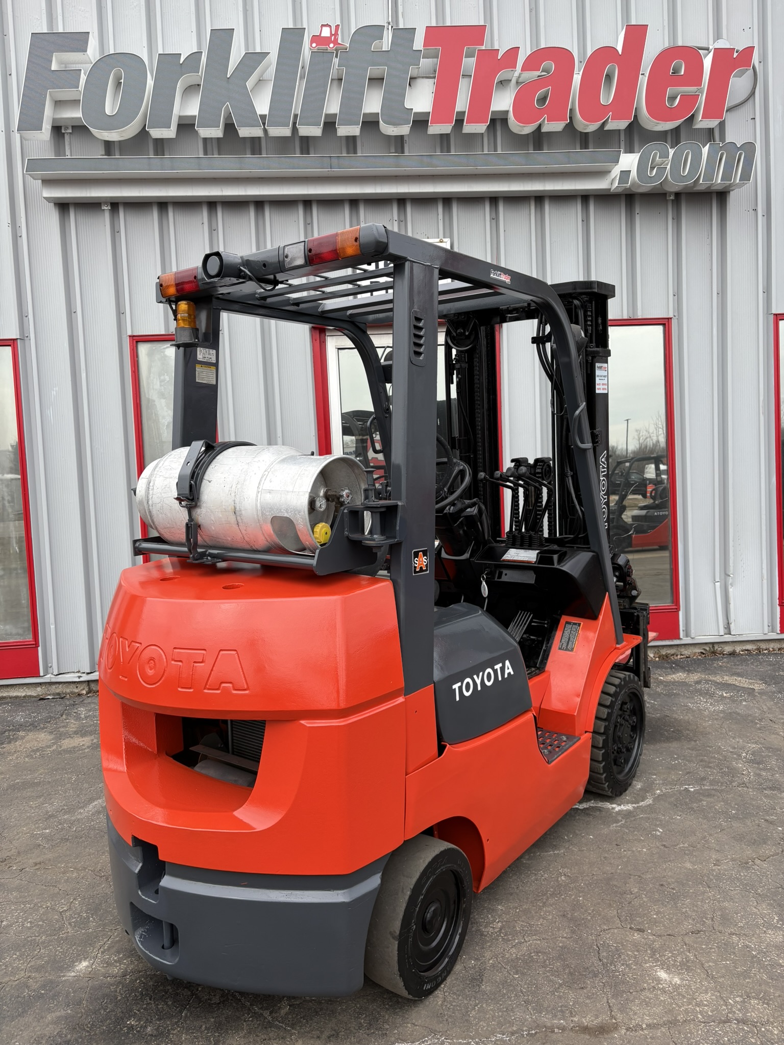 TOYOTA 7FGCU25 CUSHION TIRE 5000LB FORKLIFT WITH SIDE SHIFTING FORK POSITIONER