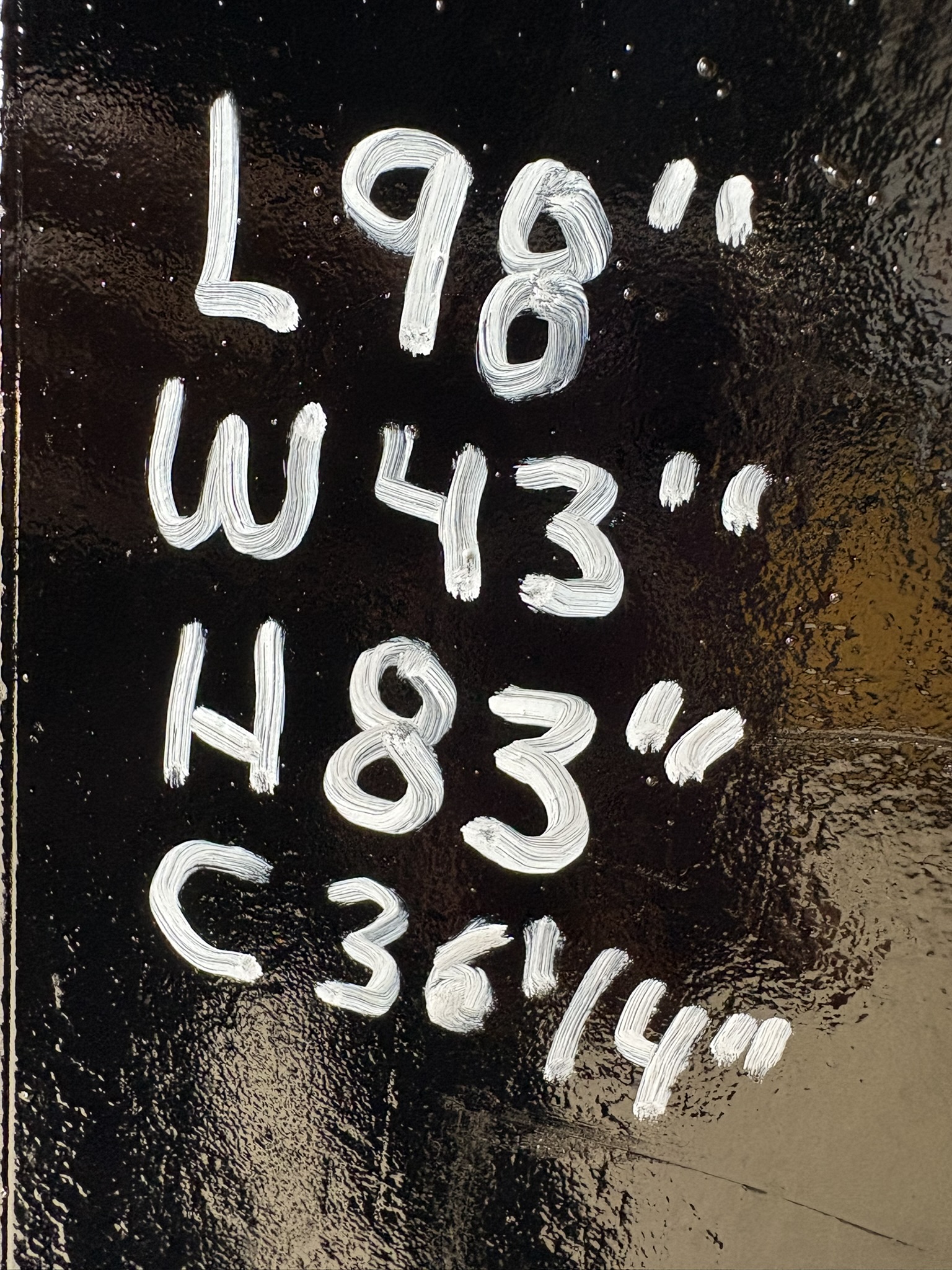L: 98" W: 43" H: 83"